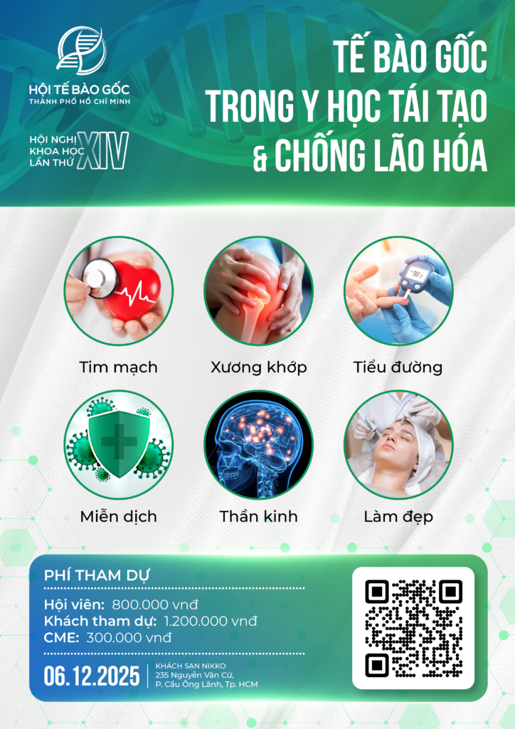 Hội nghị khoa học Tế bào gốc lần XIV: Các Công Nghệ và Sản Phẩm Ứng Dụng Từ Tế Bào Gốc được tổ chức bởi Hội Tế bào gốc Thành Phố Hồ Chí Minh.