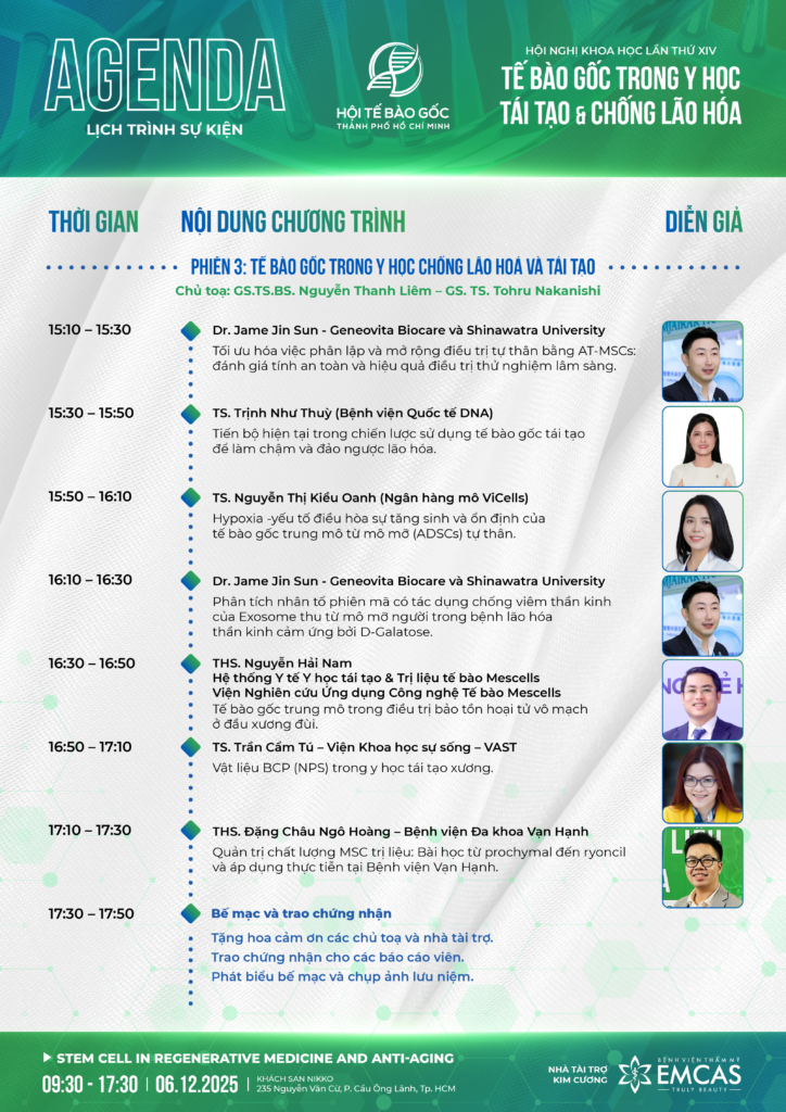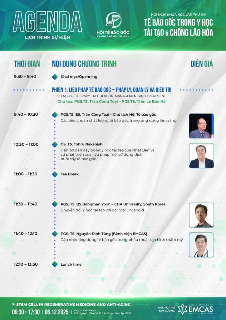 Hội nghị khoa học Tế bào gốc lần XIV: Các Công Nghệ và Sản Phẩm Ứng Dụng Từ Tế Bào Gốc được tổ chức bởi Hội Tế bào gốc Thành Phố Hồ Chí Minh.